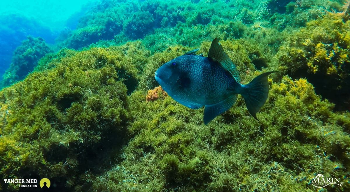 الرأس يمثل في الحد الأقصى 1/4 من الجسم. يحمل عيونًا صغيرة الحجم. يسبق العيون شق طولي. الفم نهائي، ضيق، صغير، محاط بشفاه غليظة ومزود بأسنان قوية، 14 في الأعلى، 8 في الأسفل، تمكنه من كسر قشور الرخويات أو صدفات السرطانات. فتحات عمليات التنفس صغيرة. لونه يتغير من الرمادي إلى الأخضر مع رسومات زرقاء بين الألواح وانعكاسات بنفسجية على الظهر. المظهر العام موحد إلى حد ما. يمكن أيضًا أن يتميز الجسم بثلاثة خطوط بنية داكنة غير منتظمة. الزعانف الفردية مرصعة ومخططة باللون الأزرق. لديه زعنفة ظهرية بثلاث شوكات، أكبرها، القوية، تثبت في وضعية مرفوعة بواسطة قفل يعمل مع الثانية، تتم إطلاق الأولى عندما يتم تطبيق ضغط على الثانية كنظام زناد. الزعنفة الظهرية الثانية والشرجية متطورتان جيدًا وتتموجان للسباحة. الزعنفة الذيلية طويلة، عالية ومدببة في الأجزاء العليا والسفلى على شكل هلال. الزعانف الصدرية صغيرة. الزعانف الذيلية والصدرية تستخدم للتوجيه أثناء السباحة.