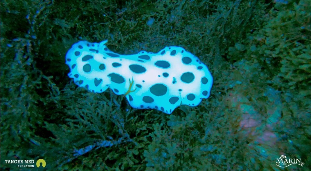 CARACTÉRISTIQUES : Longueur jusqu’à 12 cm, généralement un peu moins. Corps ovale, ferme au toucher, avec le pied recouvert par le pelage. Manteau coriace, avec une surface rugueuse. Rhinophores en forme de massue, avec un sillon transversal, se repliant en gaines. La couronne branchiale, composée de 8 branches tripennées, peut également être pliée. Couleur blanc laiteux avec des taches brun foncé de différentes tailles, plus ou moins arrondies.
